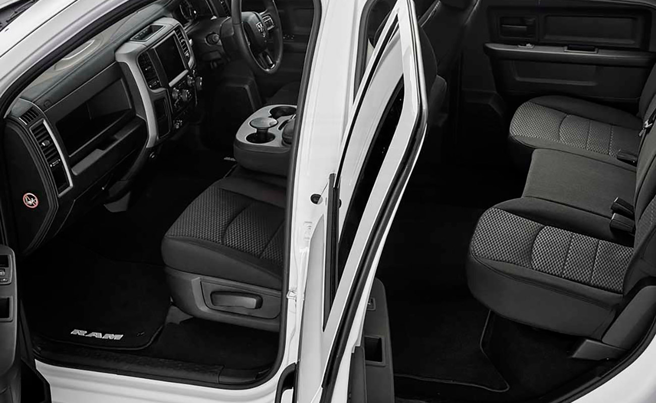 The 1500 Express Crew features a 5’7″ Cargo tub with bedliner as standard and features load tray illumination and a locking tailgate. The Ram exclusive RamBox® Cargo Management System is also available, for those looking for secure storage bins integrated into both sides of the tub.