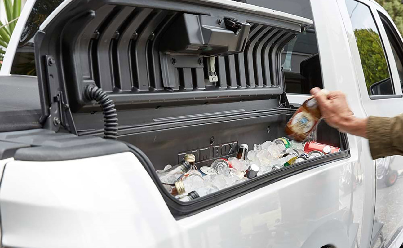 Available on the V8 HEMI® Limited and Warlock as standard and the Laramie® and Express Crew cab variants, the class-exclusive RamBox® Cargo Management System is more than just a tool box. It features a lit, secure/lockable, durable and drainable storage system incorporated into the side rails of the truck tub. . The AllSecure® remote security system allows remote locking and unlocking of the RamBox®, as well as the rest of your RAM Truck with the push of a button. RamBox® vehicles come equipped with a cargo bed extender/divider, cargo bed rails with four adjustable tie-down cleats, as well as cargo box lighting and a tonneau cover.