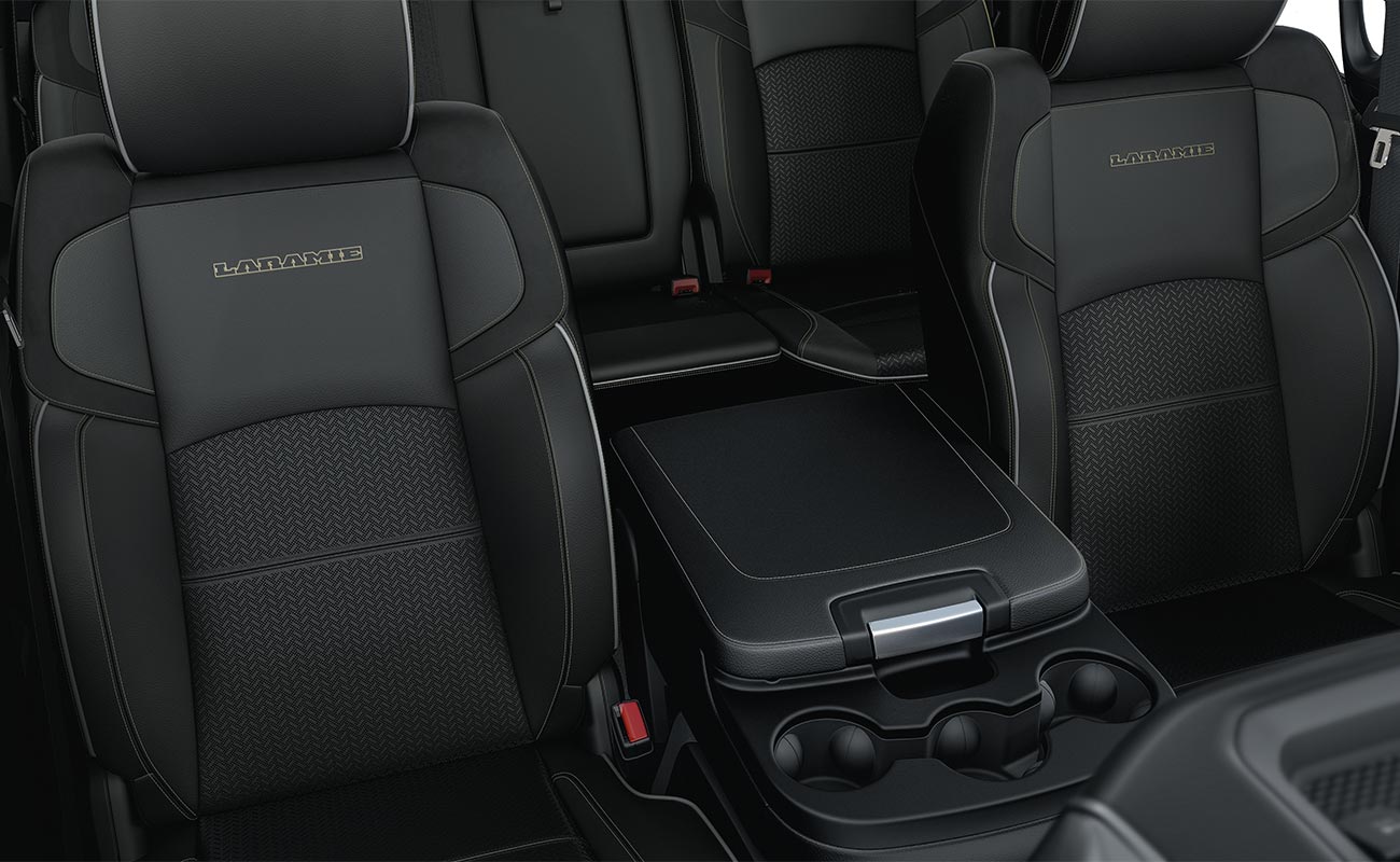 You know it the minute you see it: a Ram Heavy Duty Laramie® is refinement that rules with the capability that counts. So, move beyond that sleek exterior and those 18-inch cast aluminium wheels and investigate an interior designed with comfort at the core. The six-seater Laramie® crew cab trim caters to the buyer that values a luxurious feel. The leather-trimmed front seats are heated and vented. Medium Greystone accent stitching graces the upper dashboard, centre armrest and door panels. The all-black leather-trimmed seats also feature suede inserts. Ambient lighting is piped through the cabin allowing owners to continue their appreciation for the interior through the night. Surrounded by high-quality materials, all six passengers can relax and enjoy the ride in this impressive and spacious crew cab.passengers in the two outer seat positions also benefit from class-exclusive combination of both heating and ventilation and manual rear-seat recline, well over-delivering on expectations for a pickup truck. All passengers will appreciate and enjoy the electric panoramic sunroof giving a spectacular sky view and additional natural light.